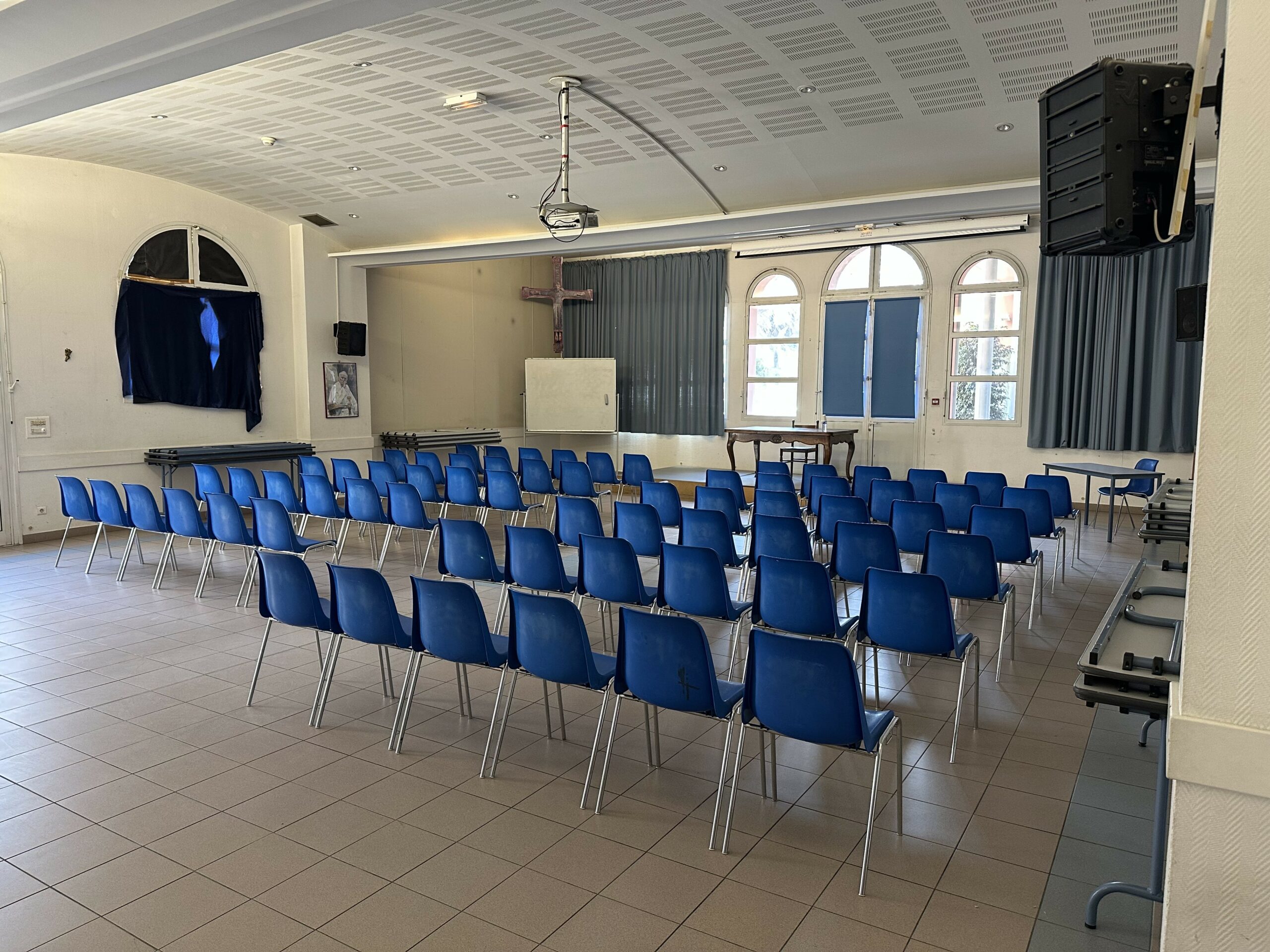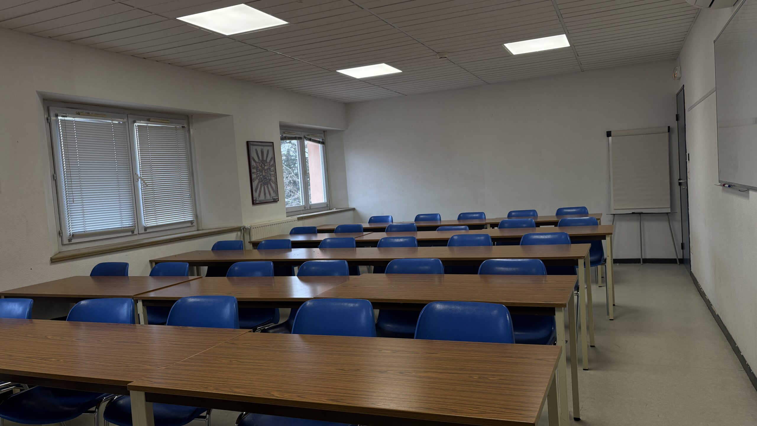 - Équipements audiovisuels : vidéoprojecteur, écran, WiFi haut débit, papperboard